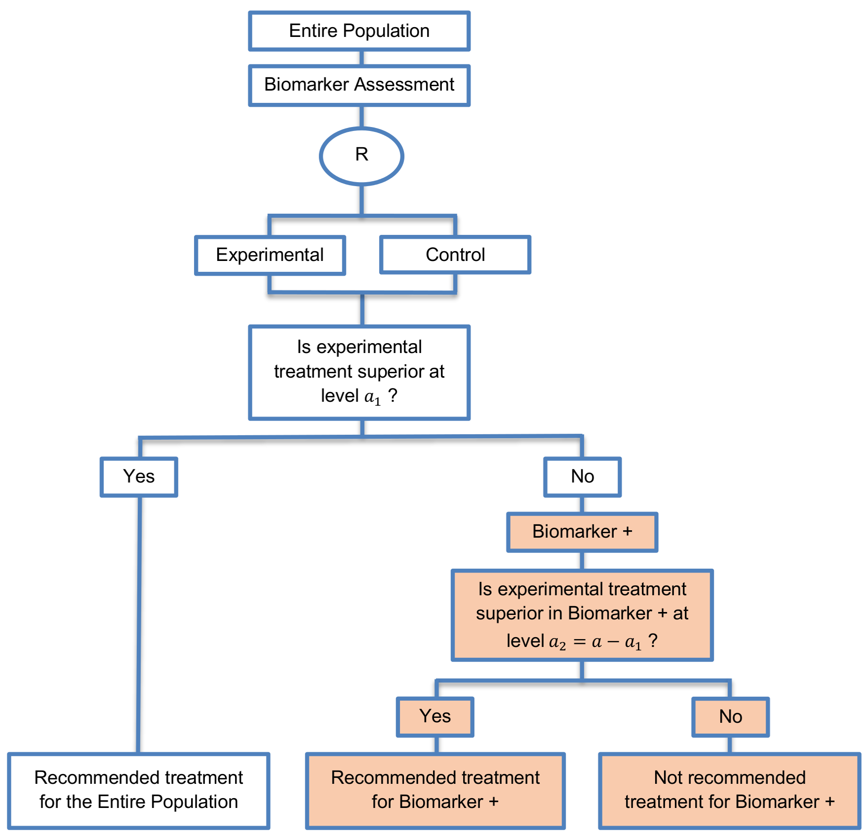 - This approach is recommended when there is insufficient confidence in the predictive value of the biomarker and that the novel treatment is believed to be effective in all individuals (i.e., the rationale for the biomarker is weak).
